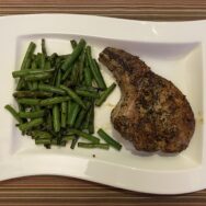 pork chop covered in / thyme and smoked paprika and / skillet-seared green beans. – #Dinner #StayHome #KissTheCook