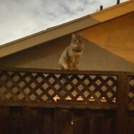 this fluffy kitty / was strolling the fence which woke / my cat who woke me. – #Meow