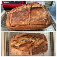 getting better at / how the bread looks. heavy scores / crosswise and lengthwise. – #Sourdough #LocalLoaves #StayHome
