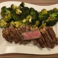 broiled broccoli and / medium-rare steak make for / a hearty dinner. – #KissTheCook #SteakHouse #SteakHome #StayHome