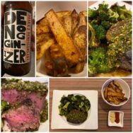 steak, broccoli, fries, / chimichurri, and a beer: / saturday night meal! – #Cheers #StayHome