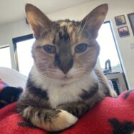 my cat seems annoyed / that i am still in her house. / “Oh? Are you still here?” – #Meow #StayHome
