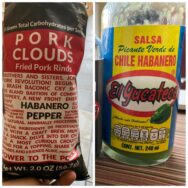 trying these pork rinds, / and they’re nice, but a little / hot sauce doesn’t hurt – #SomeLikeItHot #Chicharonnes #PorkClouds #ElYucateco