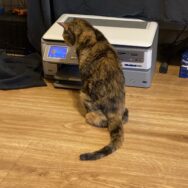 my cat was jealous / of my standing desk, but she / is improvising – #Meow #WorkFromHome