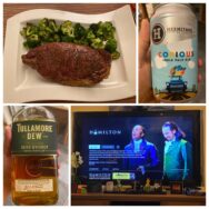 i’m not regretting / this evening’s choices. needed / some comforting things. – #Steak #Beer #Whiskey #Hamilton #StayHome
