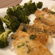 parmesan ‘breaded’ / fish, broiled broccoli, garlic / aioli. dinner! – #KissTheCook #StayHome