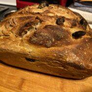 baked a sourdough loaf / with a few chopped black olives. / it smells delightful – #StayHome #NotAnOrangeSkyPicture