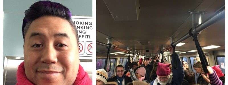 just dropped off this fierce / #American who’s flying / to march in DC – #WomensMarch ✊️