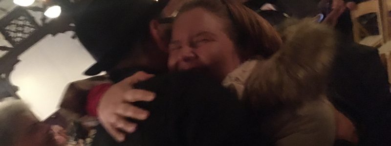 you’ll have to trust me, / this is #JeffGoldblum hugging / Julie at the show. – #LifeFindsAWay @SFSketchFest