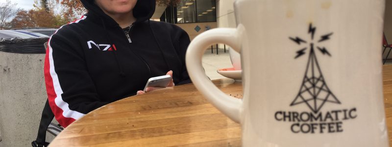 because saving the / galaxy from the reapers / sucks without #coffee. – #FemShep #N7 @chromaticcafe