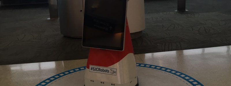 welcome-bot spotted / at San José. Not plugged in. / our jobs are still safe. – #ForNow #Automation