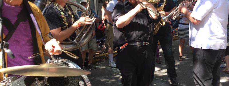 marched with this band through / town to The Big Easy Stage / playing the whole time 🙂 – #SummerFest @SanJoseJazz
