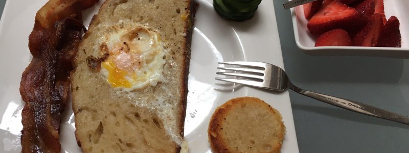 homemade sourdough / egg-in-the-hole, strawberries, / créme fraîche, and bacon! – #Breakfast