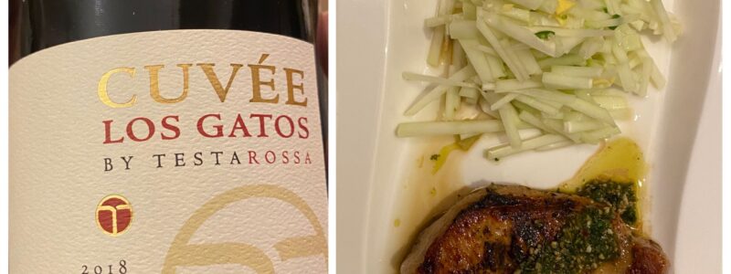papaya salad, / pork chop, chimichurri, and / a nice pinot noir – #Cheers #StayHome