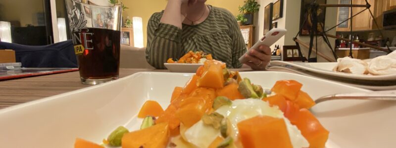 Julie made dessert: / pistachio, persimmon, / yogurt, and honey! – #HiHoney #KissTheCook #DontMindIfIDo #CanThisMarriageBeSaved